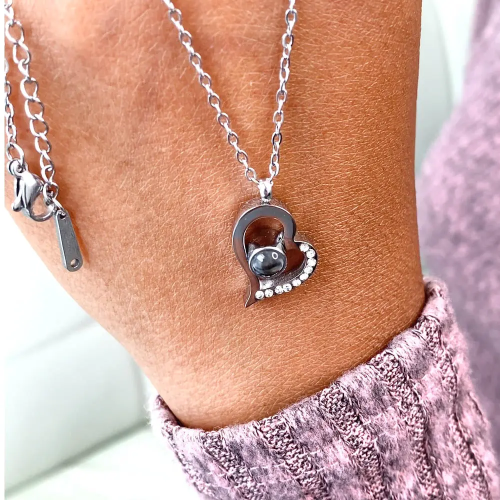 Ar Tau pažįstamas tas jausmas, kai širdyje turi tiek daug jausmų, tiek nori pasakyti, tačiau žodžiais nesugebi išreikšti nė mažos viso to dalies? Patikėk, nesi toks vienintelis. Skubame pasiūlyti Tau išeitį, mažytį papuošalą, kuriame telpa 100 kartų pakartotas prisipažinimas meilėje. Šis papuošalas: