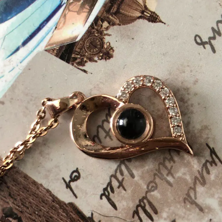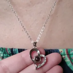 Šis žavus, nedidelis papuošalas puikiai tinkamas tiek einant pasivaikščioti, tiek lankantis restorane, teatre, ar bet kur kitur. Jo centre esantis puošnus „akmenukas“ sukurtas pasitelkiant modernias nanotechnologijas. Nukreipus į jį išmaniojo telefono žibintuvėlio šviesą, galima perskaityti frazę Aš Tave myliu, išverstą į 100 pasaulio kalbų.